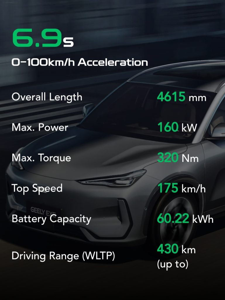Dilengkapi sistem keselamatan ADAS Level 2, layar sentuh 15,4 inci, serta sistem audio premium, Geely EX5 menghadirkan pengalaman berkendara yang aman, nyaman, dan mewah. Dengan desain elegan dan fitur terdepan, EX5 menjadi pilihan ideal bagi mereka yang mengutamakan inovasi, performa, dan keberlanjutan.